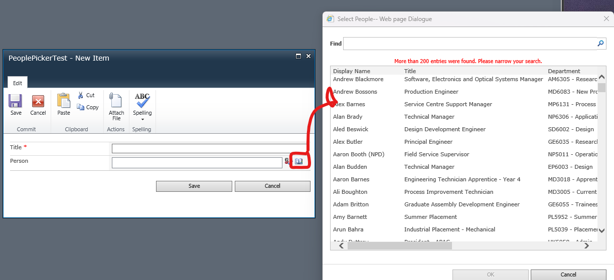 Where a people picker field is associated to a specific SharePoint Members Group, the field should have the capacity to provide a drop down of the members to select from.