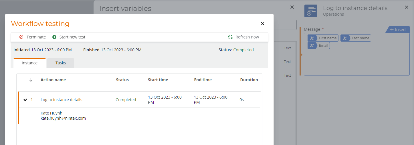 Initiator details for Forms start events will start populating in Workflow Testing after this week's release.