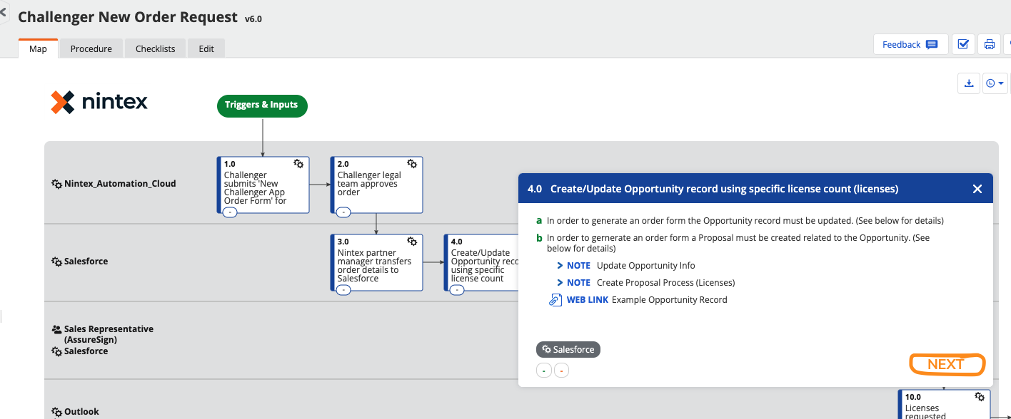 When using the 'Map' screen to work through a process you currently have to click on a step and then a pop-up window appears with the details of the given step. If I want to proceed with the next step it seems I have to close down the pop-up window and then choose the next step.