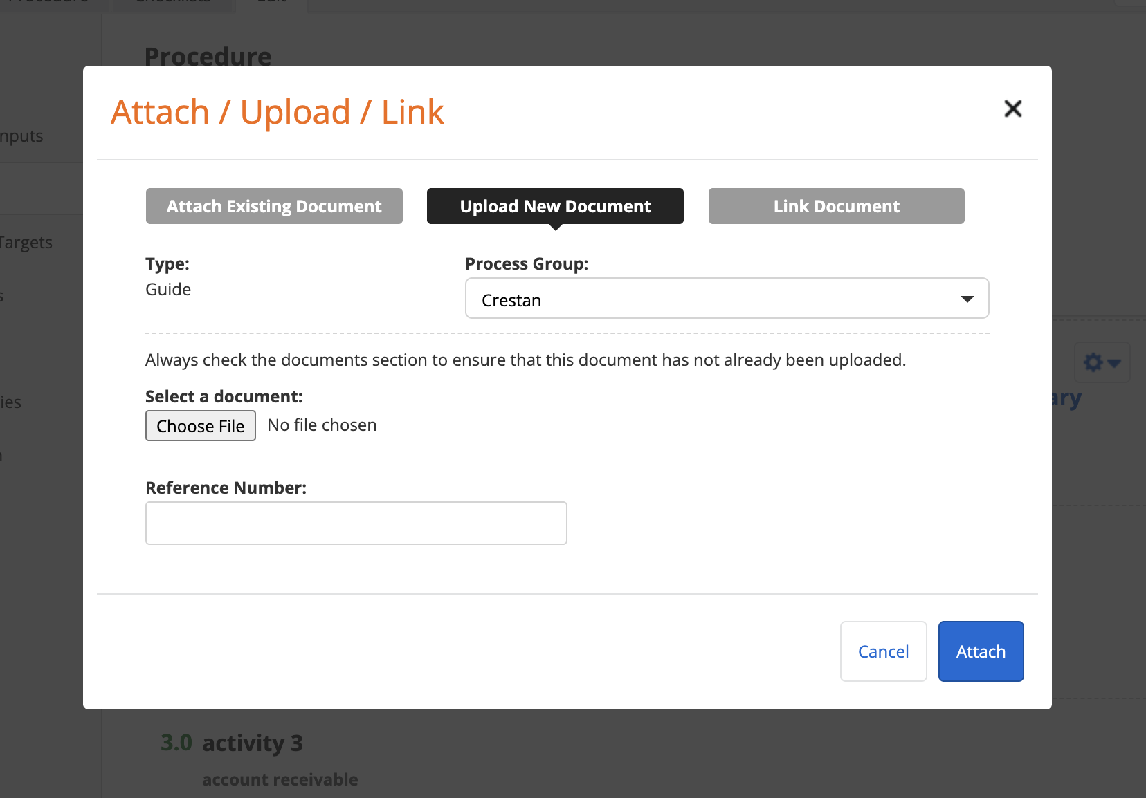Currently when uploading a new document, there is no option to allocate the new document a Document Reference.